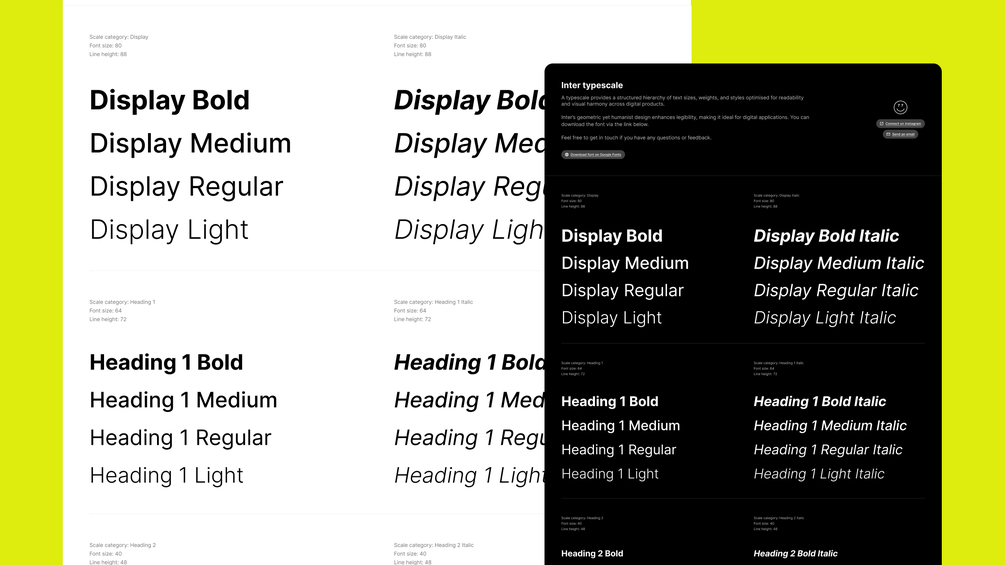 A Figma file containing pre-configured variable font settings for font family, font weight, font size and line height, these have been applied to type styles, an intuitive structure for effortless customisation. Whether you're designing for web, mobile, or UI/UX projects, this template will save you tons of set-up time and ensure typographic consistency.
